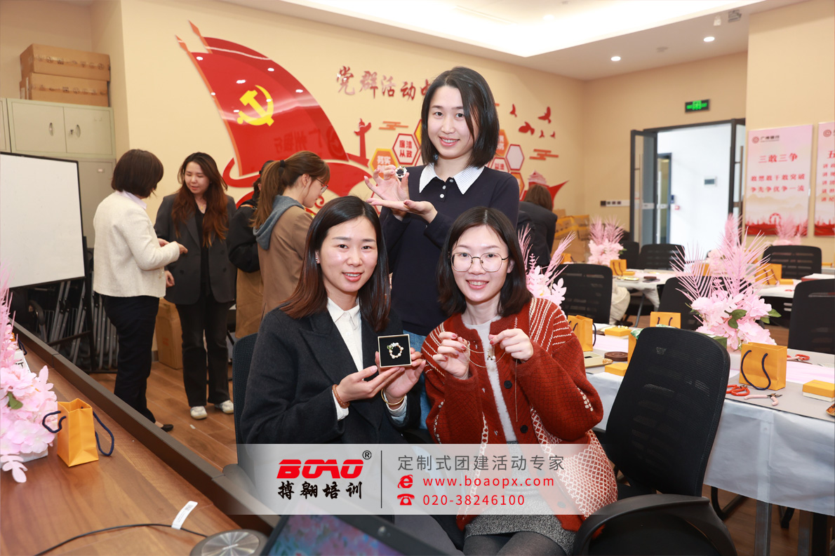 活動在大家佩戴或展示著自己的作品、互相贊美與合影的歡快氣氛中圓滿結(jié)束。每一件飾品都閃爍著獨特的光芒,映照著創(chuàng)造者的巧思與團(tuán)隊的和諧。搏翱廣州拓展培訓(xùn)公司也倍感榮幸,能為廣州銀行增城支行這樣充滿活力的團(tuán)隊,設(shè)計與陪伴這段融合創(chuàng)意與手作的靜謐之旅。搏翱廣州拓展培訓(xùn)公司謹(jǐn)向廣州銀行及增城支行致以最真誠的祝愿;愿事業(yè)發(fā)展如這手工飾品,歷經(jīng)精心雕琢,終成璀璨之作;愿在增城這片充滿希望的熱土上,金融服務(wù)能激發(fā)無限創(chuàng)意,編織美好未來,與客戶和區(qū)域共同成長,閃耀更加奪目的光彩!